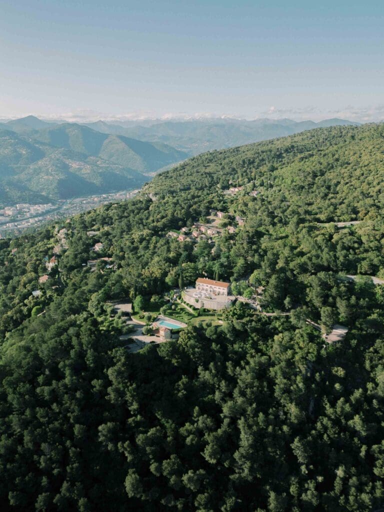 For destination weddings, the location is particularly well-suited to international couples. Nice’s Côte d’Azur Airport is close. The Principality of Monaco, with its hotels and its particular energy, is just minutes away. And the journey up to the Domaine — winding roads, glimpses of the sea between the pines — already feels like part of the experience.