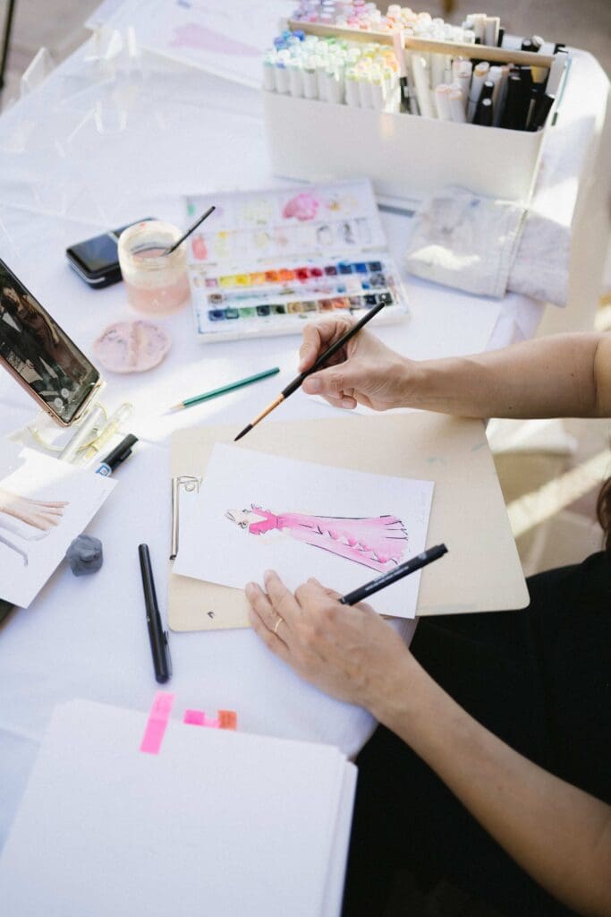 What I remember most about Lauren and Patrick’s wedding is the care — in every direction. A live watercolour artist capturing the scene as guests arrived. White petals released at the close of the ceremony. Moments designed not to impress, but to make people feel something.